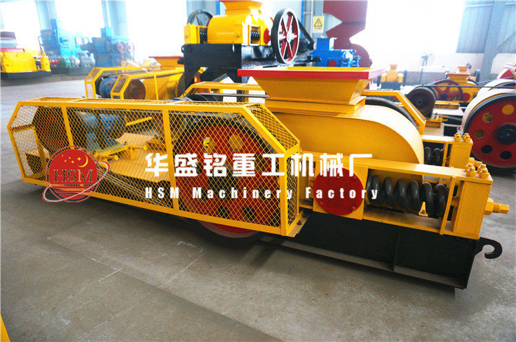 对辊式破碎机是采用低转速高压力对辊挤压的工作原理。对辊式破碎机含有两个光面辊轮,在生产的时候,物料由破碎机上部垂直落入破碎腔里,由两辊之间产生的强大压力相互挤压,摩擦使物料破碎。
